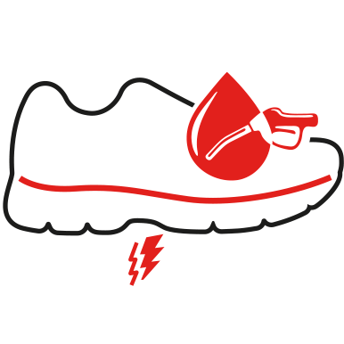 • Stiefel mit unterschiedlichen Materialstärken und äußeren Verstärkungen an den Stellen, die am stärksten Schlägen ausgesetzt sind (Rist, Ferse, Vorderseite).