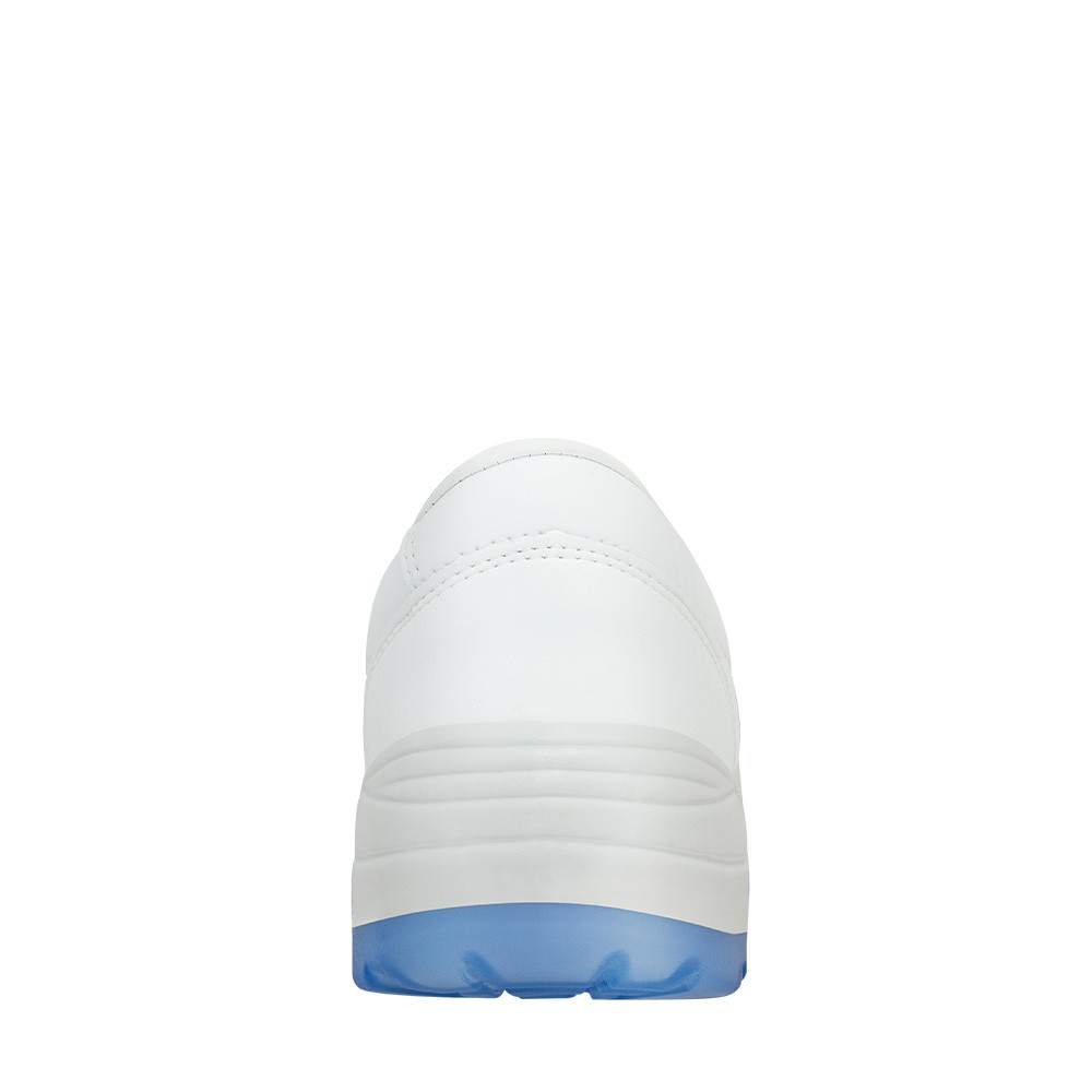 Zapato tipo mocasín en microfibra blanca, antimicrobiano, ergonómico y con cierre ajustable para un rápido calce-descalce. Especialmente destinado a su uso por la industria alimentaria, limpieza, laboratorios, sanitario, etc.