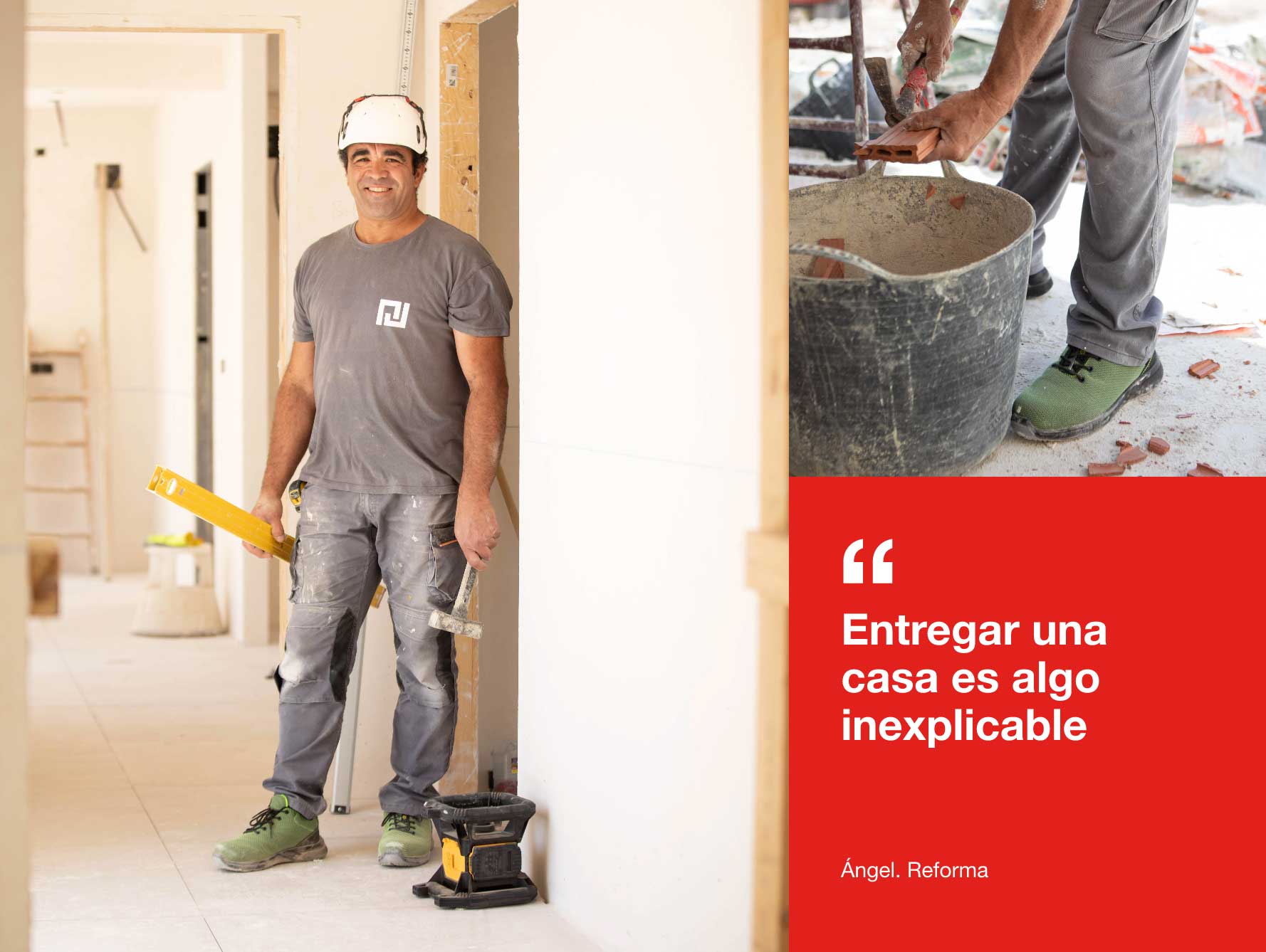 Desde bien pequeño, Ángel acompañaba a su abuelo al trabajo, un por aquel entonces maestro de obra que hizo despertar en su nieto una pasión por la construcción. Tal fue así, que años más tarde, esa pasión se convertía en profesión. Un día a día que llena a nuestro currante de auténtico orgullo.