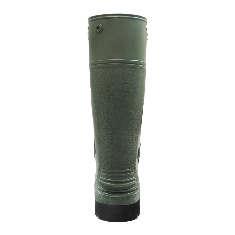 Bota de caña alta fabricada en PVC verde con textil de soporte y suela antideslizante.