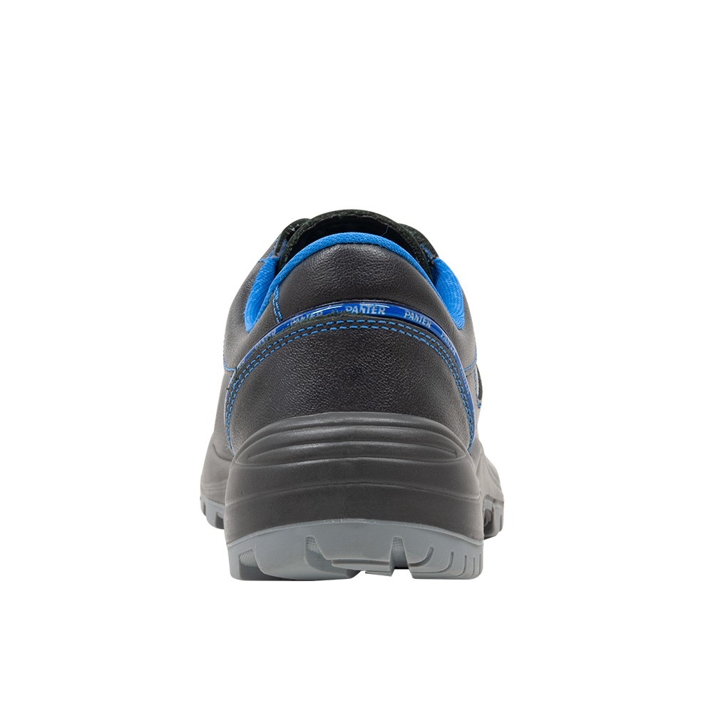 Zapato de seguridad muy resistente con cordones, fabricado en piel flor natural transpirable con tratamiento hidrófugo. Incluye la revolucionaria tecnología PANTER Oxígeno.