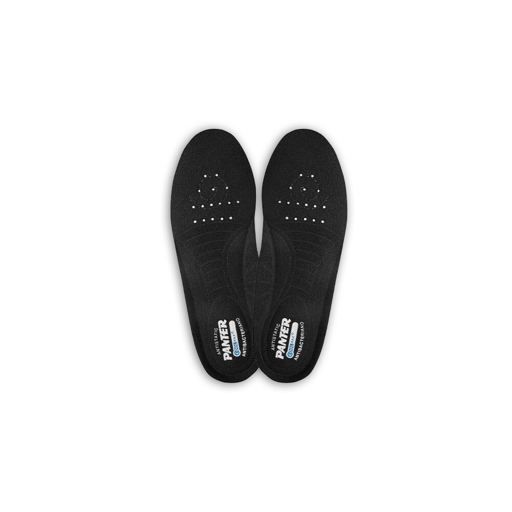 Première intérieure thermoforme anatomique en gel latex recouverte d’un Tissu COOLMAX, ce qui maintient les pieds frais et secs. Son design présente plusieurs zones capitonnées et sa partie arrière moue apporte du confort au talon. Elle comporte des propriétés antistatiques, antibactériennes et anti-mycoses.