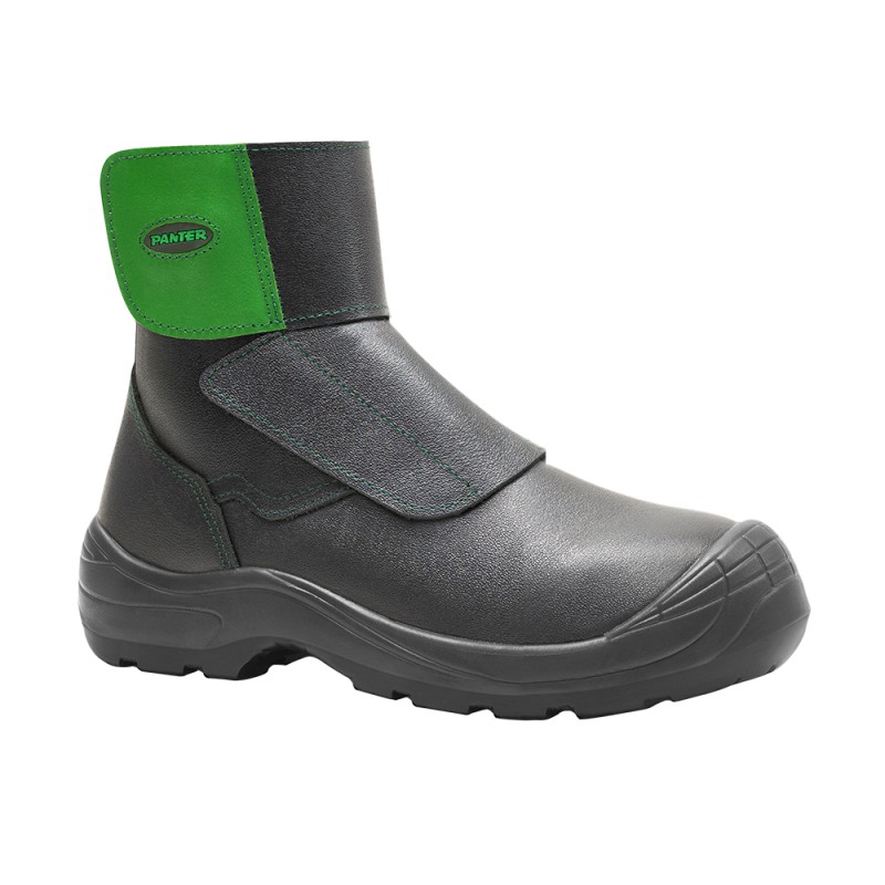 Chaussure haute de sécurité spécialement pour soudure, fabriquée en cuir naturel pleine fleur extra épais et hydrofuge. Protection efficace contre les hautes températures. Résistance et durée extraordinaires.