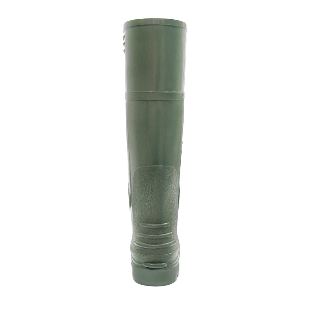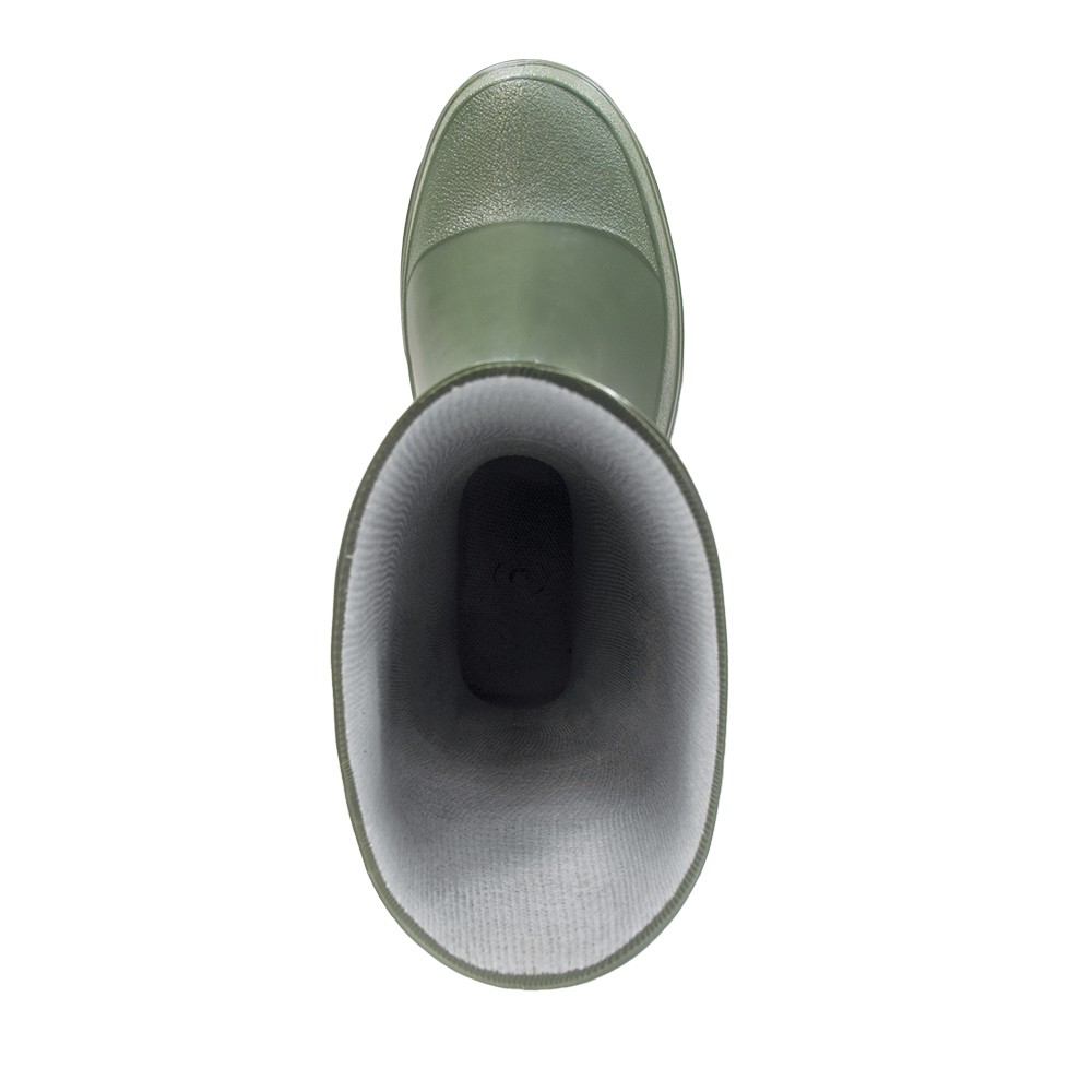 High wellington made of green PVC, with a fabric support and anti-slip outsole.