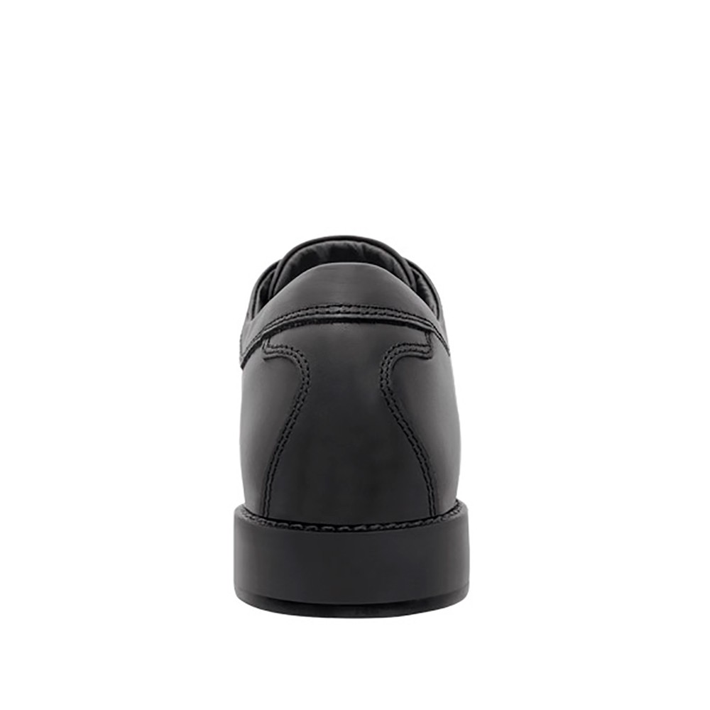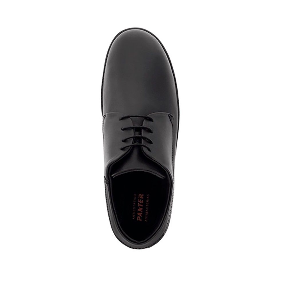 Elegant black blucher shoe for men made from very soft, natural full grain and water repellent leather. Manufactured with a flexible and extremely light sole. Professional executive footwear for formal wear, urban, office or uniform.