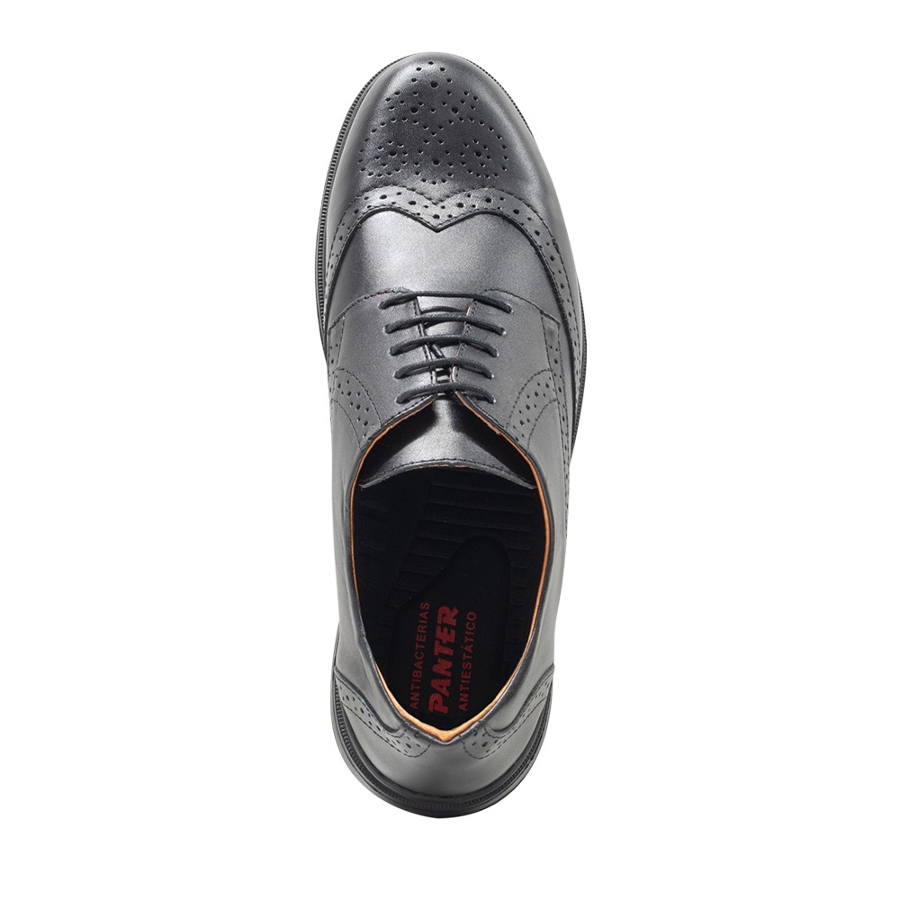 Werkschoenen voor heren in zwart en leer 1e kwaliteit waterafstotende natuurlijke volnerfleder, gekozen om zijn kwaliteit, weerstand en ademend vermogen. Anti-vermoeidheidsschoen, voor professionals die veel tijd staand doorbrengen . Professionele schoenen executive, formeel, stedelijk, kantoor, uniform ...