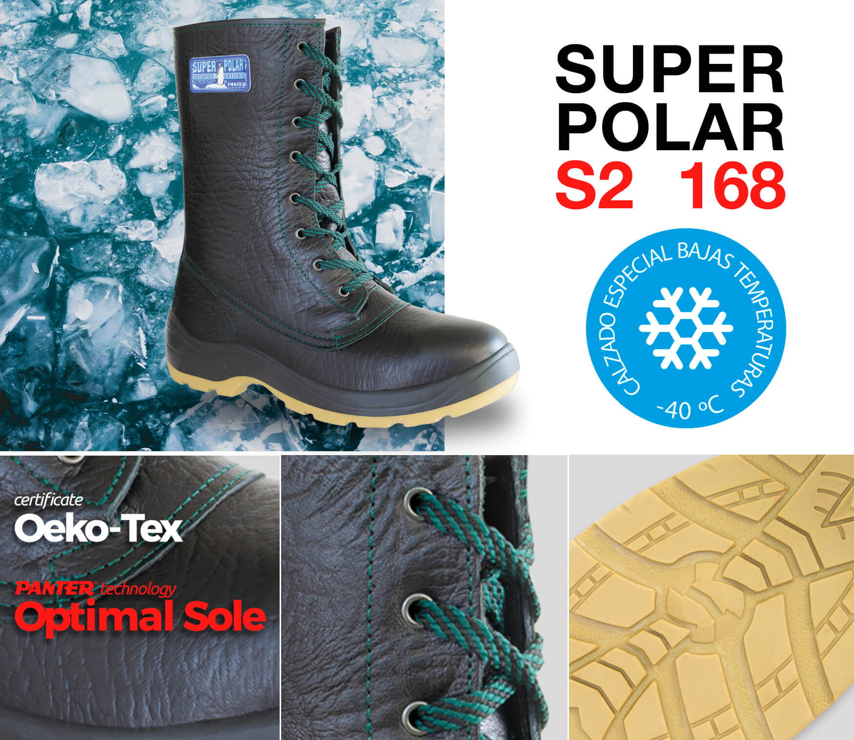 Special PU + RUBBER sole for walking on ice and frost. It protects the foot from extreme cold while its excellent anti-slip coefficient provides maximum grip.