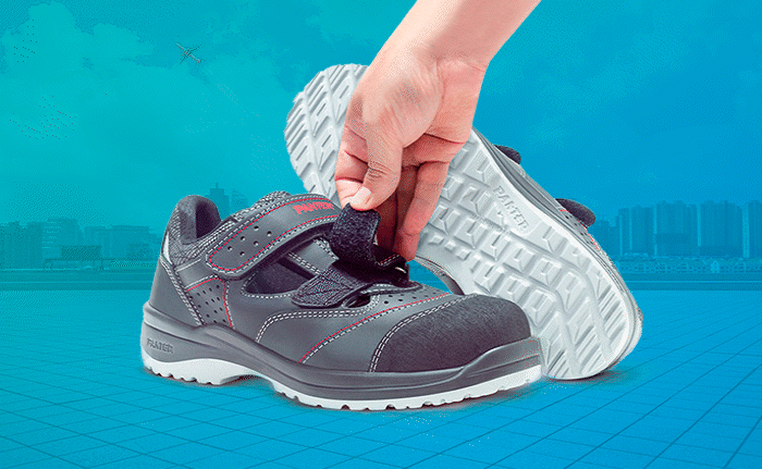 Ergonomiczne, elastyczne i lekkie sandały ochronne. Obecna konstrukcja i regulowane zamknięcie styków za pomocą wysokowydajnego przemysłowego rzepu VELCRO®. Zawiera otwory i boczne perforacje, które sprzyjają przewiewności stopy.