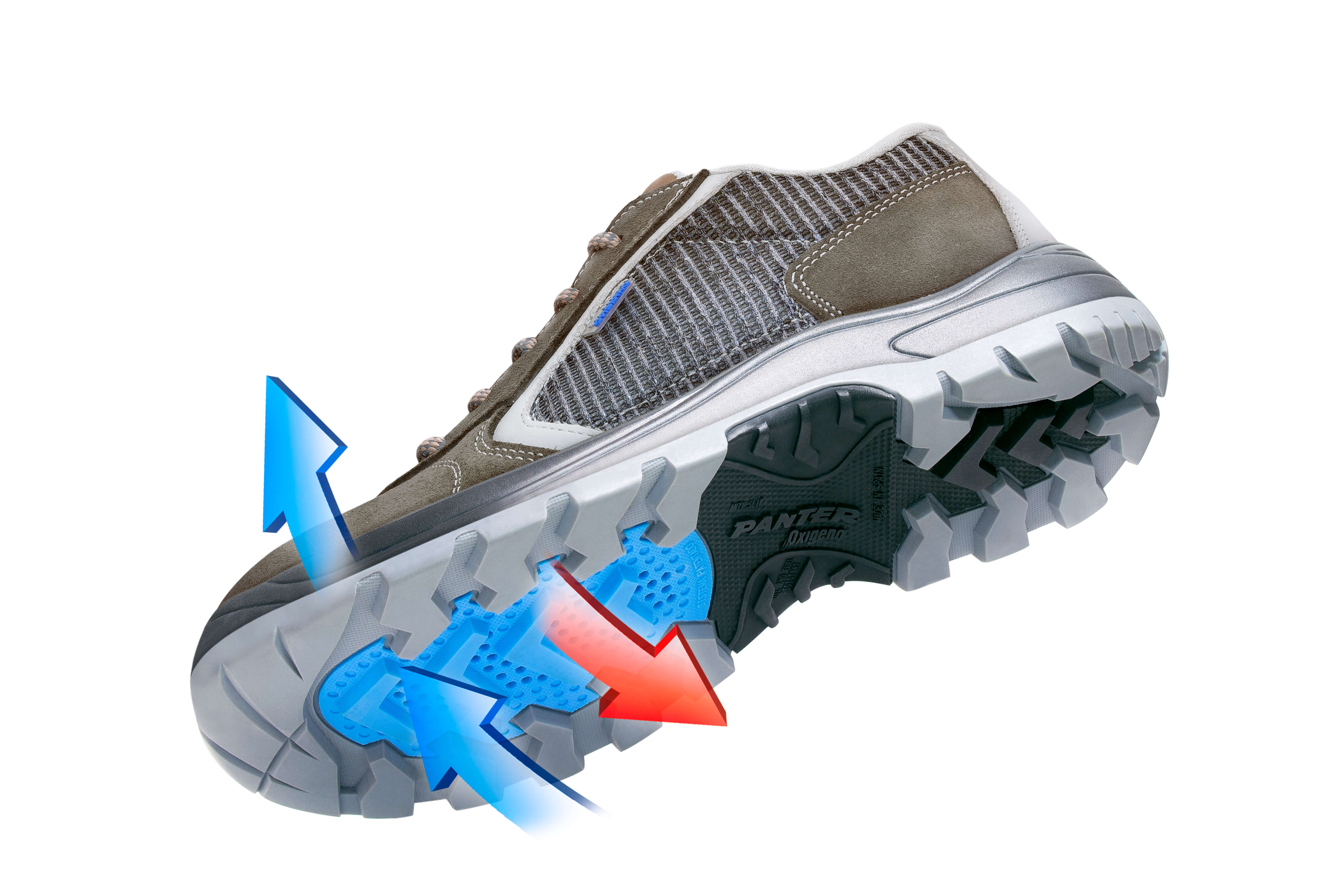 Wysoce oddychający but ochronny, wykonany z oddychającej skóry dwoinowej 1. jakości i świeżej tkaniny Mesh z wodoodporną powłoką. Zawiera rewolucyjną technologię PANTER.